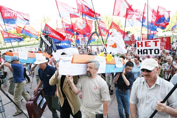La rancœur justifiée de la population russophone enfle de jour en jour. C’est sur ce fond que les évènements de Féodossia se sont déroulés. Rappelons que des techniciens militaires nord américains accompagnant du matériel de l’OTAN ont essayés de débarquée en Crimée au mois de mai en vue de manœuvres militaires. Sous la pression de la rue, ses militaires ainsi que leur matériel ont dus quitter la Crimée. Il est à noter que ce refus de l’OTAN, perçu comme une armée d’occupation, transcende la « fracture linguistique » dans la réalité très surévaluée parmis la population (Quelqu’un parlant le russe comprend intuitivement l’ukrainien et vis & versa.) et cela, malgré les provocations manifestes et permanentes du gouvernement dans sa démarche de « dé-russification », de plus la constitution ukrainienne qui stipule qu’avant toute intégration dans un bloque militaire, la population doit être consultée par référendum, a été enfreinte. Malgré tout Madame Timoshenko de nouveau, plus ou moins, premier ministre veut provoquer ce referendum en 2008 au plus tard. Sachant que la majorité de la population dans l’état actuel de la situation ne voterait pas pour, Madame Timochenko tente de remobiliser une partie de la population contre la fédération de Russie et donc une partie de l’Ukraine contre l’autre, en essayant en l’espèce de rallumer la « guerre du gaz » par sa volonté de remettre en cause les protocoles signée par les deux états sur le prix du gaz, il y a seulement six mois de cela. Par cela elle veut aussi - et ce, avec la complicité de cette presse occidentale aux ordre de certains politiques, d’un certain capital - inquiéter « l’Europe » quant à son approvisionnement en gaz afin d’essayer de confortée le basculement définitif de cette « l’Europe » du côté de l’OTAN et du libéralisme économique en mai 2004, Europe, s’enfermant définitivement dans une dépendance, non vis à vis de la fédération de Russie comme la propagande essaye de le faire croire, mais vis-à-vis de cette sainte alliance « américano libéralo nationaliste »