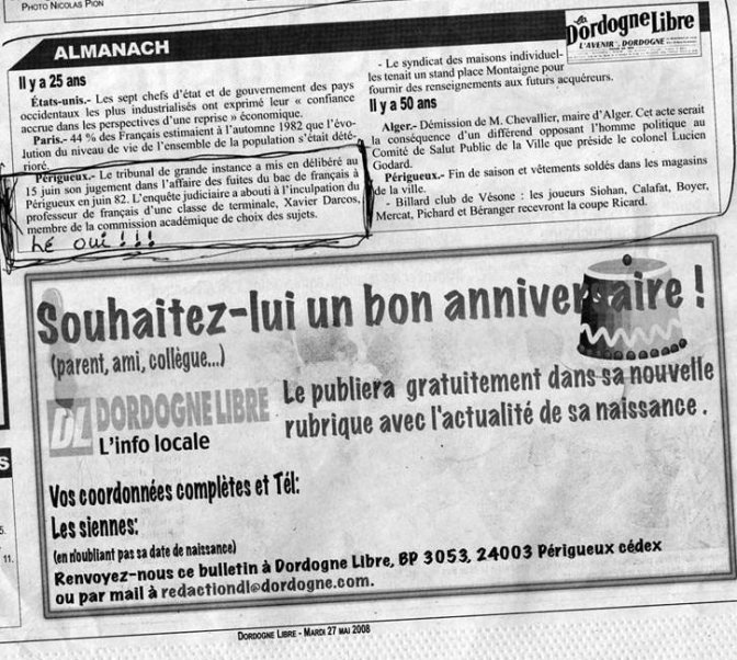 Pourquoi, pour avoir ébruité un sujet similaire de celui qui allais tomber au Bac de Français, étant donné que celui-ci l’enseigna auprès des élèves concernés, alors que le règlement l’interdit. Cliquez sur l’image pour agrandir l’article.