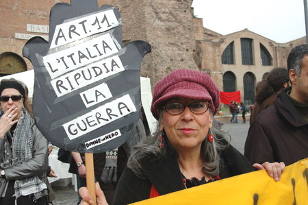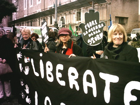 Ed io, come altri resistenti ostinati,a passeggiare reggendo striscioni, con la mia manina di donna in nero che dice “articolo 11 l’Italia rifiuta la guerra”.