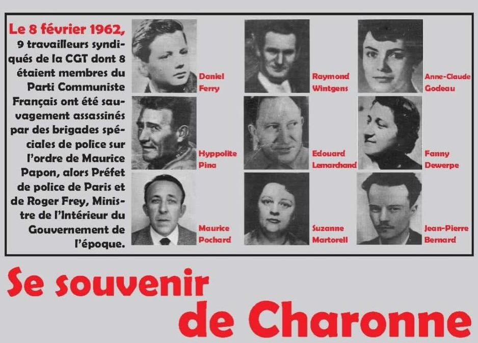 8 février 1962 - Ce jour nous nous souvenons de celles et ceux qui manifestaient pacifiquement contre les exactions de l’OAS, pour la paix en Algérie, pour la fraternité républicaine.