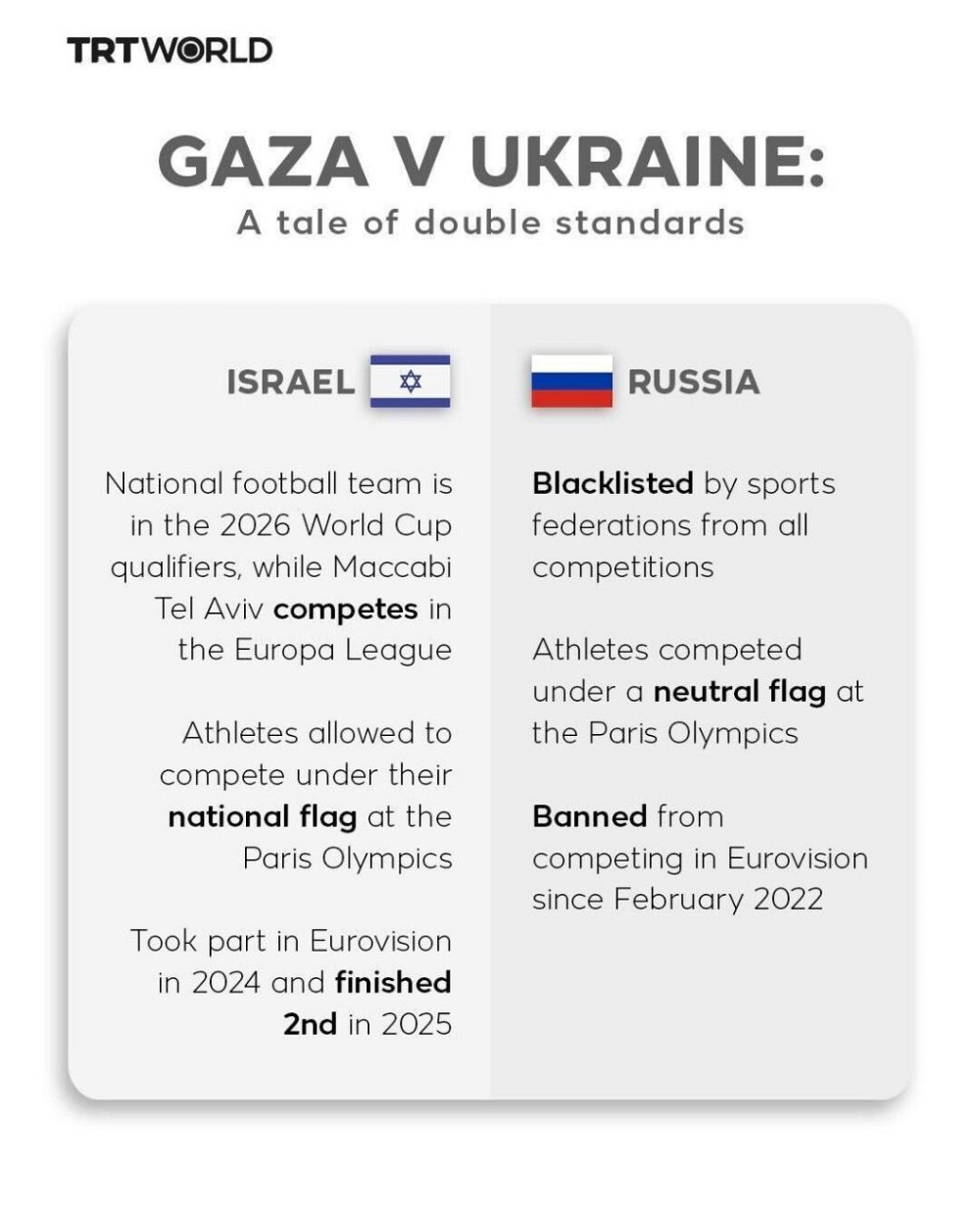 Alors que la Russie a été exclue des sports mondiaux et de l’Eurovision, Israël continue de concourir sans sanctions.