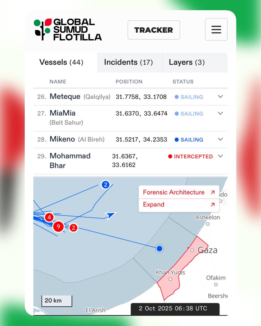 Mise à jour sur l’interception israélienne de la Flottille Global Sumud (GSF) au large des côtes de Gaza