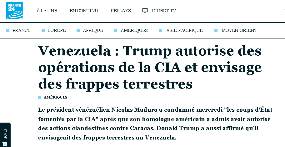 Cette démarche représente une escalade sans précédent : on parle d’actions militaires possibles et d’un déploiement massif de forces américaines dans les Caraïbes. Ils préparent pratiquement officiellement, et apparemment à un stade avancé, un coup d’État au Venezuela !