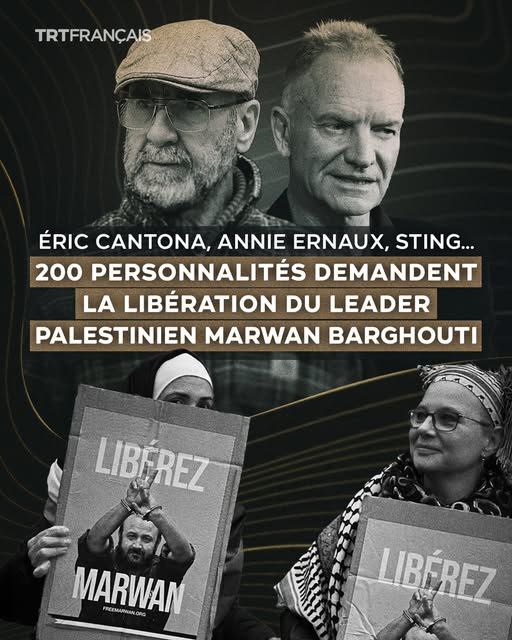 Plus de 200 personnalités internationales, dont Éric Cantona, Annie Ernaux, Sting ou encore Javier Bardem, signent une lettre ouverte appelant à la libération de Marwan Barghouti, emprisonné en Israël depuis 2002.