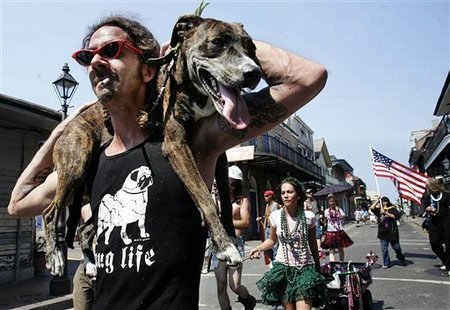 (AP) Mat James caries his dog Baby Pearl as he marches in the Southern Decadence parade in the French...