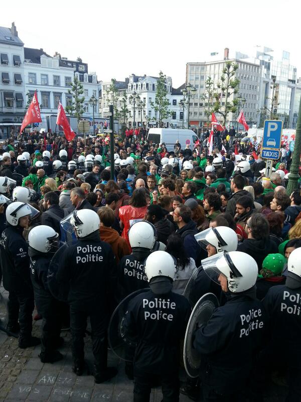 ntUn millier de manifestants (syndicalistes, agriculteurs, militants politiques et associatifs) se sont rassemblé contre l’European Business Summit. Déjà 150 arrestations !
