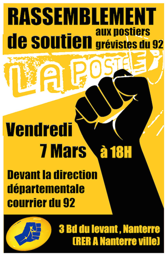 Appel à soutien : 36ème journée de grève des postiers du 92