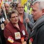 Le 31 mars, c’est une foule de 5000 personnes qui s’est présentée en fin de matinée devant le tribunal pour un « pique-nique » surveillé par un déploiement impressionnant de forces de police et de gendarmerie. Dans un nuage pas lacrymogène mais presque dû à la cuisson intensive de merguez, de nombreuses déclarations se sont succédées sous un crachin persistant. En présence de Thierry Lepaon (secrétaire général de la CGT) et d’Annick Coupé (porte-parole de Solidaires), des représentants locaux de la CGT, de Solidaires, de la FSU, de FO se sont exprimés. « Les Cinq de Roanne, les Deux de Lyon, les Conti, les Goodyear, les Quatre du Havre... et demain, vous et moi ? questionnait un militant CGT. Devons-nous rougir de riposter à des attaques d’une violence extrême faites sur les salariés, les privés d’emploi, les jeunes ou les retraités ? Depuis quand militer, défendre les salariés et combattre les réformes injustes est un délit ? On tente de nous intimider, de nous bâillonner. Sachons résister tous ensemble ! »