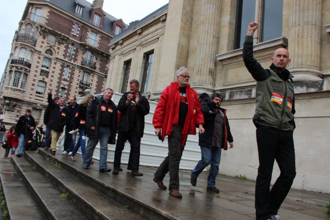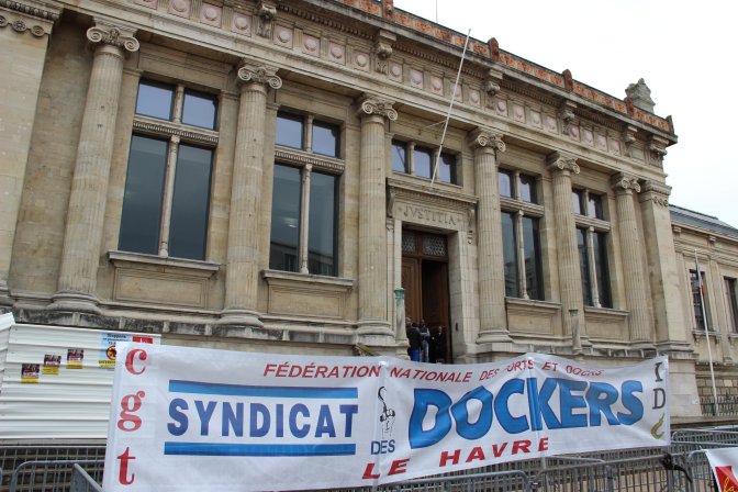 Nous avons commenté sur Bellaciao les deux affaires qui ont conduit Reynald Kubecki et Jacques Richer (co-secrétaires de l’union locale CGT du Havre), Pierre Lebas (ancien secrétaire général de la même UL) et Dominique Mutel (militant de la CGT Construction) devant le tribunal correctionnel. La première concernait un collage d’affiches sur les vitrines des permanences du PS et du PRG havrais. La seconde parlait du porte-documents d’un huissier siffleur parti en fumée dans un feu de palettes lors d’un conflit social.