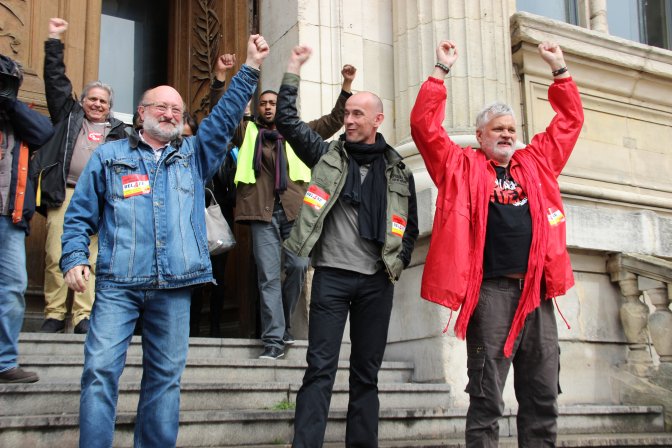 En suspens, deux mois de prison avec sursis et 300 euros d’amende dans la première affaire, six mois de prison ferme et 500 euros d’amende dans la seconde. Un comité de soutien s’était formé avec des artistes, des syndicalistes, des élus communistes, des porte-parole du NPA... Des vidéos militantes circulaient. La mobilisation locale, départementale et nationale battait son plein. Les dockers ne cachaient pas leur intention de bloquer les ports si les camarades ne bénéficiaient pas d’une relaxe.