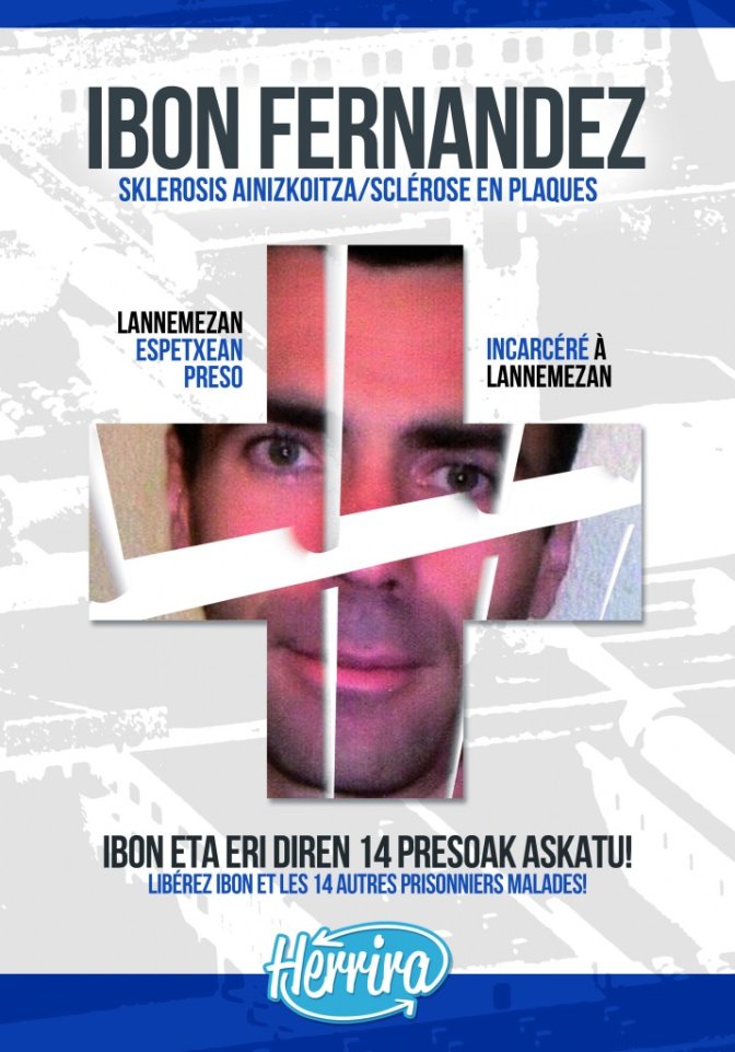M. IBON FERNANDEZ IRADI est atteint d’une sclérose en plaques, pathologie très grave qui nécessite des soins adaptés. Ces soins ne peuvent être pratiqués dans un contexte - celui de la prison - qui rend toute évolution positive illusoire. C’est pourquoi nous demandons que M. IBON FERNANDEZ IRADI puisse bénéficier de la suspension de peine.