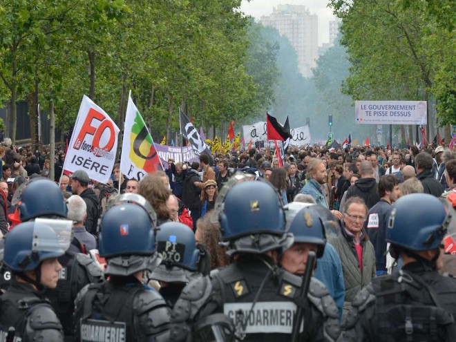 Il est temps de regarder en face la dérive autoritaire d’un continent. En Espagne, filmer la police est interdit ; en Grèce, les gouvernements élus sont mis sous tutelle ; au sein des instances européennes, l’Agence de Défence Européenne conçoit, placidement, l’écrasement militaire des troubles sociaux causés par l’aggravation de la crise économique. Aucun d’entre nous ne peut plus échapper à la question : quel est notre seuil de résistance ? La préfecture de police de Paris expliquait ce matin, en toute candeur, qu’elle est trop occupée à réprimer les migrants et que faute de moyen pour nous réprimer, nous, elle ne peut nous laisser manifester demain. Demain devrait être le jour où nous disons non à l’oppression, oui à la liberté. Sinon demain, Mardi prochain ; sinon Mardi, quand ? Avant qu’il soit trop tard.