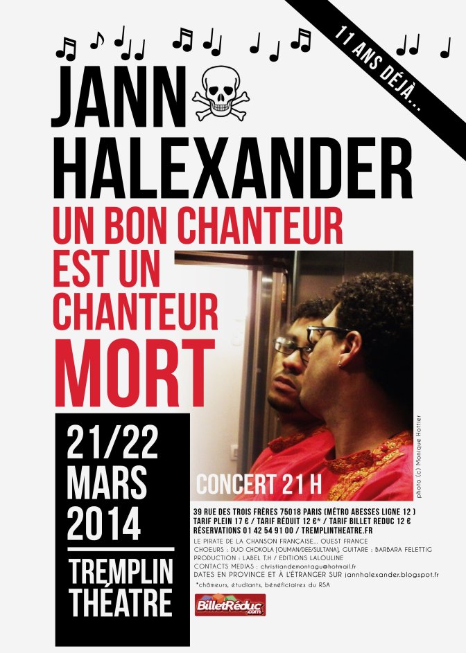 Concert Jann Halexander ’Un bon chanteur est un chanteur mort’ 21/22 mars, Paris