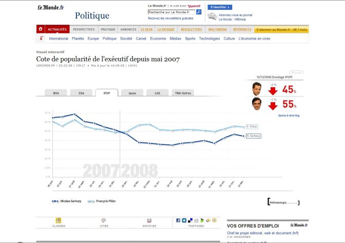 1. Cote de popularité de l’exécutif depuis mai 2007, 21 décembre 2008, 17:27, par Gnafron