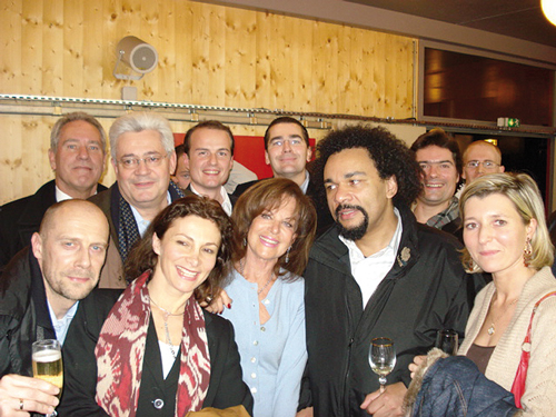 Photo de famille datant de 2006 où l’on peut reconnaître entre autres : Alain Soral, Bruno Gollnish, Dominique Joly et Frédéric Chatillon (deux anciens du GUD), Jany Le Pen et Dieudonné. (Sources : reflexes.samizdat)