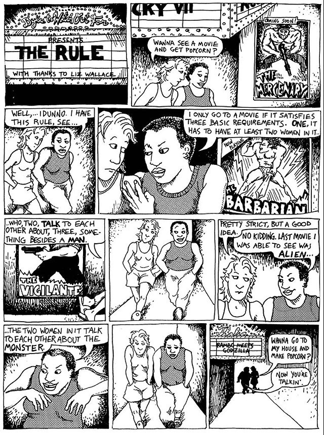 * Une liste des films à l’épreuve du test de Bechdel peut être consultée et enrichie sur le site bechdeltest.com. Toutes à vos écrans !