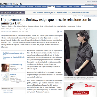 El hermano del jefe del Estado galo es objeto desde hace días de numerosos e incesantes rumores sobre la virtual paternidad de la hija de Dati y, molesto por la multiplicación de artículos sobre su vida privada que juzga difamatorios e infundados, ha exigido a la dirección de la revista en cuestión que fotos y artículos en los que él aparece desaparezcan lo más rápidamente posible de su edición digital.