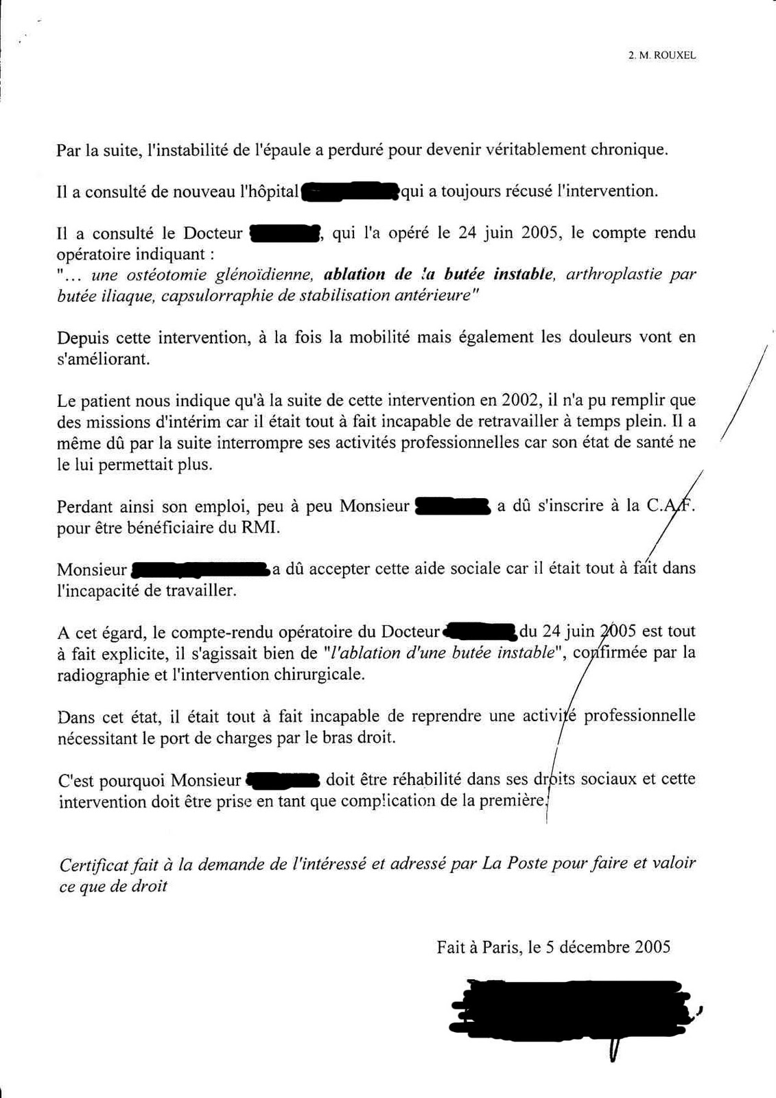 La sécurité sociale m’ a aussi enfoncé, alors même qu’ elle était averti de l’ échec de l’ intervention elle m’ a déclaré consolidé et a rapidement suspendu mes indemnités. Décision désastreuse en cette période extrêmement délicate qui aurait dû être consacrée à la recherche d’ un chirurgien compétent.