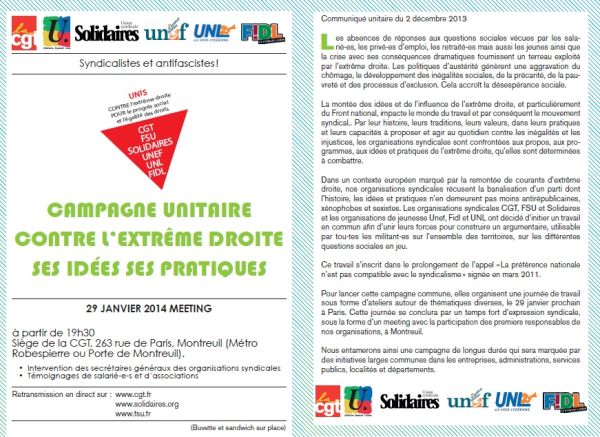 1. Journée du 29 janvier : campagne unitaire contre l’extrême droite, 27 janvier 2014, 18:53, par PierreP