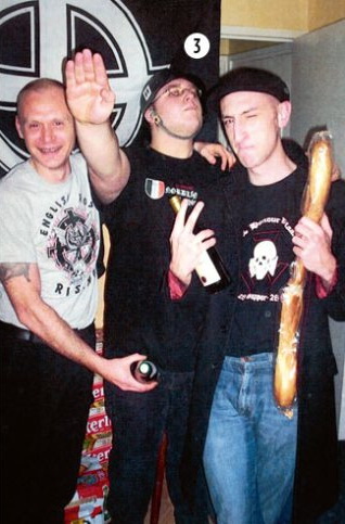 Baptiste Coquelle (au centre avec des lunettes) entouré de ses amis skinheads.