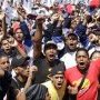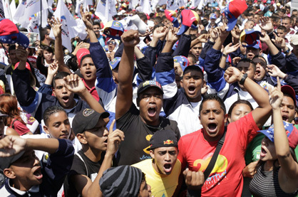 12 mars, à Caracas. Marche des étudiants du milieu populaire pour défendre les institutions démocratiques face aux violences de l’extrême droite.