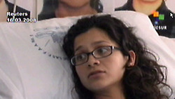 Lucia Morett, étudiante à la UNAM de México (université grande comme une ville), où elle étudie la littérature dramatique, est en convalescence à Quito (capitale de l’Equateur). En effet, elle n’est pas morte dans le massacre commandé par Uribe, Sarkozy et les USA et qui a coûté la vie à RAUL REYES, en dépit du fait que des "militaires" soient revenus "achever" les blessés (elle en témoigne).