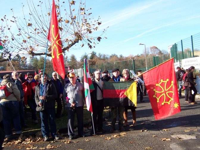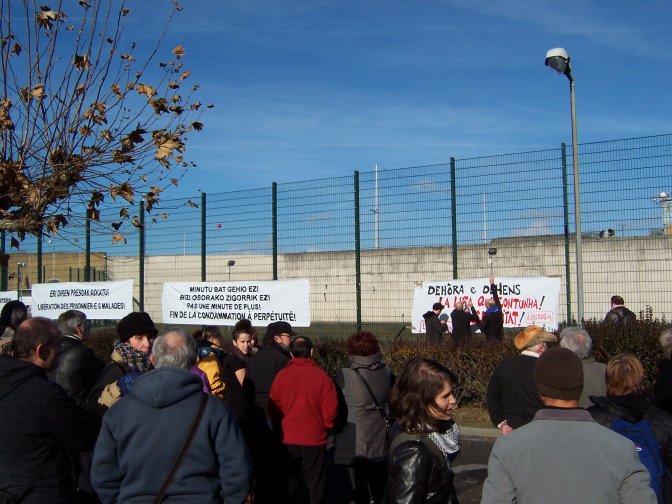 Hier (14/12/2013), à l’appel du mouvement "Herrira", plus de 200 personnes souvent venues du Pays Basque et d’Occitanie se sont rassemblées à la mi-journée devant la prison de Lannemezan ("Lanamesa" - Hautes-Pyrénées). Elles entendaient appeler au respect des droits de l’homme vis-à-vis des prisonniers basques dans les établissements pénitentiaires. Basques et Occitans, à l’occasion de cette manif pour la défense des droits des prisonniers, n’avaient pas oublié Georges Ibrahim Abdallah.