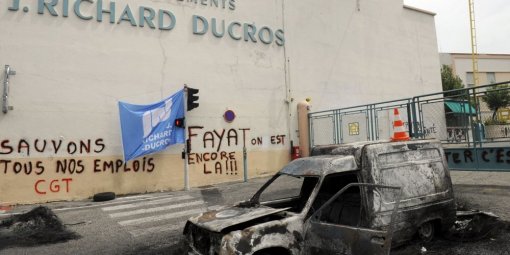 "On veut savoir ce qu’ils vont faire pour contraindre le groupe Fayat à financer le plan social" estimé à 12 millions d’euros, selon le délégué syndical CGT de Richard Ducros, Richard Valmalle. "Pour l’instant, Fayat ne se manifeste pas", a-t-il pointé.