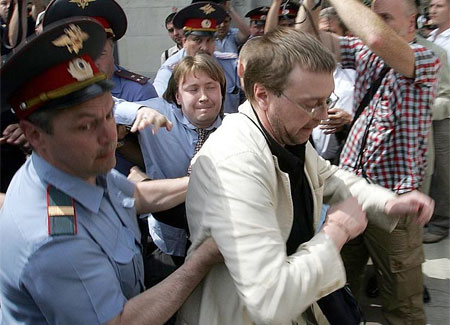 La police anti-émeute russe a arrêté à Moscou l’organisateur de la gay pride, des députés européens, un vétéran britannique de la cause homosexuelle.