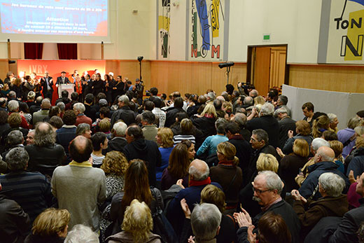 C’est dans une salle des fêtes de l’hôtel de ville pleine à craquer que le maire Pierre Gosnat a proclamé les résultats du premier tour de l’élection municipale à Ivry ce dimanche 23 mars à 23h précises. Un premier tour marqué par une abstention de 52,65%, en progression de deux points par rapport au scrutin de 2008 (50,28%).