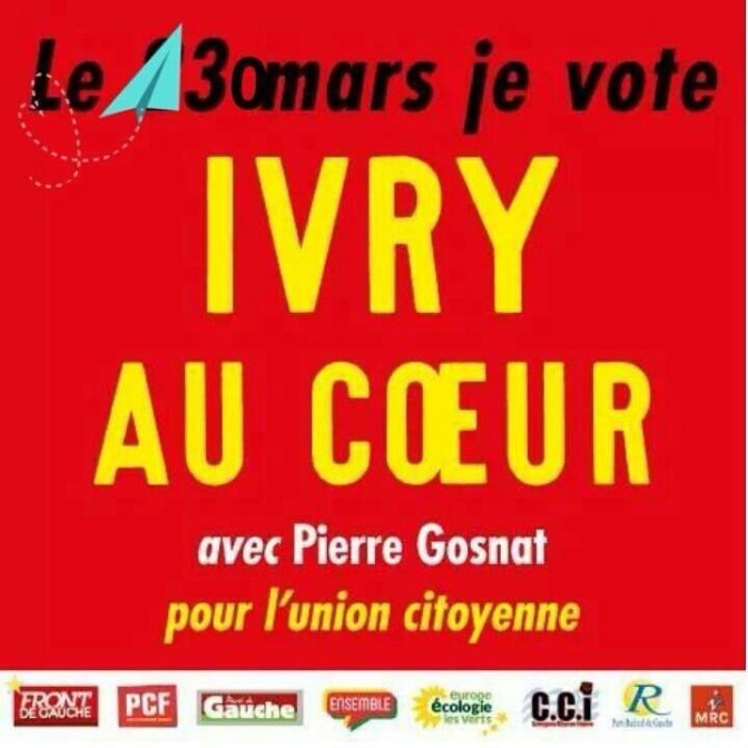 Dimanche 23 mars, au soir du premier tour de l’élection municipale, la liste Ivry au cœur portée par le maire sortant Pierre Gosnat a recueilli 49,69 % des suffrages exprimés. Il y aura donc un second tour dimanche prochain, le 30 mars.