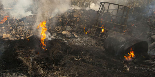 Il faut dire qu’il est assez bien placé. Selon la direction du vent, son église reçoit de plein fouet les miasmes des dizaines de décharges en décomposition qui ceinturent la ville. Il reconnaît, à l’odeur, les produits pharmaceutiques, les solvants, les résidus de colles, qui se décomposent lentement dans le sol, polluant les nappes d’eau souterraines et les puits. A cette puanteur s’est ajoutée plus récemment celle des feux qui mêle, dans une fumée âcre et noire, les résidus toxiques et ceux qui le sont moins, sans laisser de traces. Du 1er janvier 2012 au 31 août 2013, 5 000 incendies ont été répertoriés par les pompiers dans presque autant de décharges légales ou illégales.