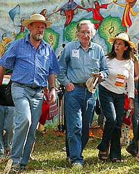 Noam Chomsky plante un arbre dans l’école de formation intégrale des militants sans terre, près de Sao Paulo.