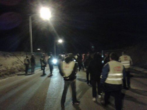 Photos prises à 6h30 du matin [jeudi 12 décembre], pour une simple distribution de tracts sur le site d’ITER. Merci aux 80 (environ) camarades présents !