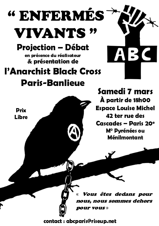 Cette soirée sera également l’occasion de présenter le collectif Anarchist Black Cross Paris-Banlieue.