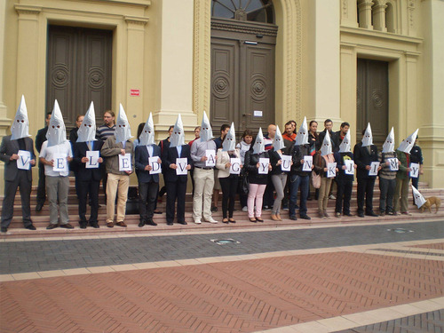 Des joyeux drilles du syndicat officiel de l’Université de Szeged (ce qui signifie qu’il est supporté et financé par l’état), ont décidé d’apporter leur soutien de manière assez cocasse hier à leur patron ayant publié sur sa page Facebook un jeu de mot raciste à propos de l’absence de neige à noël. Tradition que ces étudiants racistes respectent plus que tout car noël n’est pas une fête juive, ni bolchevique ni noire ni tsigane.