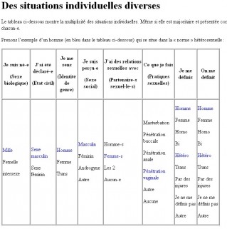 Le tableau décrit par Zemmour figurait bien sur le site (visible en cache ici, le site ayant été victime de hacking depuis lundi, on y reviendra). Contacté par oEy si, le directeur de l’association, Alain Miguet explique que ce tableau n’est pas destiné aux enfants de 11 ans, mais aux lycéens et aux étudiants. Il n’est par ailleurs pas présenté en "une" du site, ou dans une section dédiée aux adolescents, mais dans une rubrique annexe. Contrairement à ce qu’affirme Zemmour, il ne s’agit pas d’un questionnaire, mais d’un moyen de montrer que l’hétérosexualité n’est pas la seule norme. "Le tableau ci-dessous montre la multiplicité des situations individuelles. Même si elle est majoritaire et présentée comme norme, l’hétérosexualité n’est pas la seule voie. Le contexte (lieu, moment, durée, à deux ou à plusieurs…) est aussi un facteur déterminant du vécu de chacun-e", peut-on y lire.