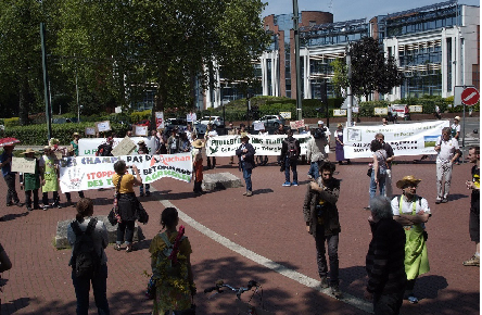 Les militants de Pour un Site Protégé entre Loire et Forêt (SPLF45) dans le Loiret, de Voguette 84 dans le Vaucluse, du Collectif Pour le Triangle de Gonesse dans le Val d’Oise et de la Ferme des Bouillons sur les hauteurs de Rouen, qui luttent sur leurs territoires respectifs contre des projets d’immobilier commercial sur des terres agricoles, s’étaient donnés rendez-vous samedi 17 mai devant le siège de l’Association Familiale Mulliez (AFM), à Roubaix, où ils ont été rejoints par de