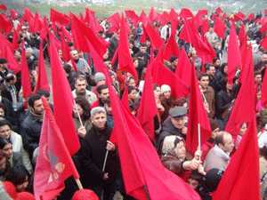 Photo : quelque 3000 sympathisants du DHKC (Front révolutionnaire de libréation du peuple) ont défilé le 12 mars 2006 dans le quartier de Gazi à Istanbul pour commémorer le 11e anniversaire du massacre perpétré par les escadrons de la mort et la police dans le quartier (17 morts dont 7 militants du DHKC).