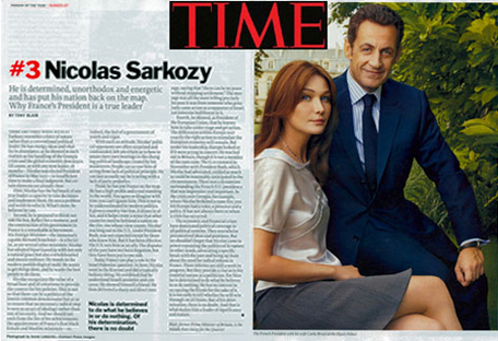 Mais s’il ne va pas jusque là, dans le numéro spécial du Time consacré aux « personnalités de l’année », l’ancien Premier ministre britannique se fend malgré tout d’un portrait dithyrambique du locataire de l’Elysée qui pointe à la troisième place derrière Barack Obama et Henry Paulson : « Bien sûr, (…) dix-huit mois, c’est un peu court pour rendre son verdict. Mais certains éléments sont déjà clairs. Tout d’abord, Nicolas a l’étoffe d’un véritable chef de file : une capacité à prendre des décisions et à les appliquer. Il voit un problème et veut le résoudre. Qui plus est : il croit qu’il le peut. »
