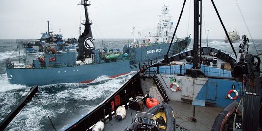 C’est une véritable bataille navale qui oppose les équipages de Sea Shepherd aux baleiniers. Les militants écologistes tentent d’empêcher les navires nippons de procéder à la pêche des cétacés en s’interposant avec leur flotte et en essayant de bloquer les hélices. L’organisation n’hésite pas à mener des abordages en pleine mer, et même parfois des sabotages sur les navires à quai ce qui a parfois valu à ses activistes de se faire tirer dessus.