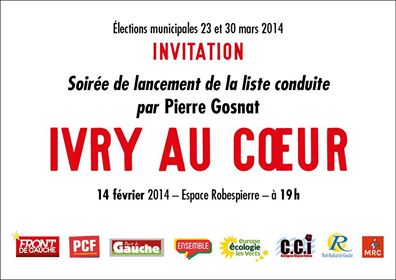 Venez nombreux, motivés, solidaires, dynamiques ... pour découvrir la liste de très large rassemblement de la gauche et des citoyens conduite par Pierre Gosnat ainsi que les grandes orientations pour l’avenir de notre ville.