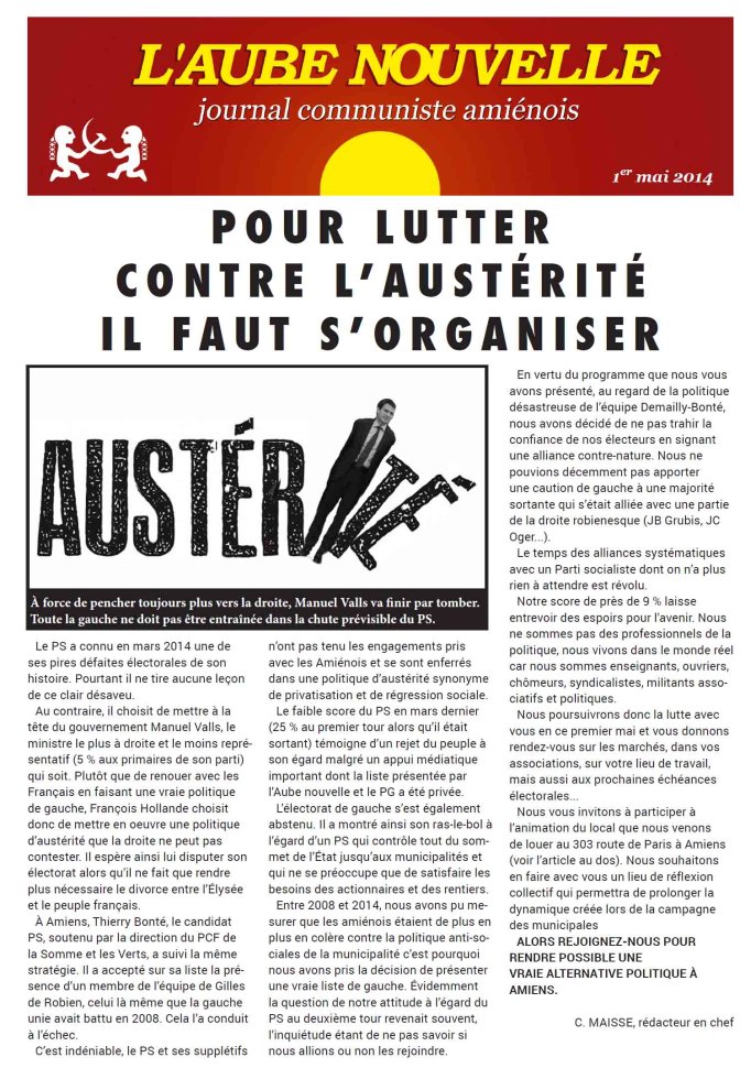 Entre 2008 et 2014, nous avons pu mesurer que les amiénois étaient de plus en plus en colère contre la politique anti-sociales de la municipalité c’est pourquoi nous avons pris la décision de présenter une vraie liste de gauche. Évidemment la question de notre attitude à l’égard du PS au deuxième tour revenait souvent, l’inquiétude étant de ne pas savoir si nous allions ou non les rejoindre.
