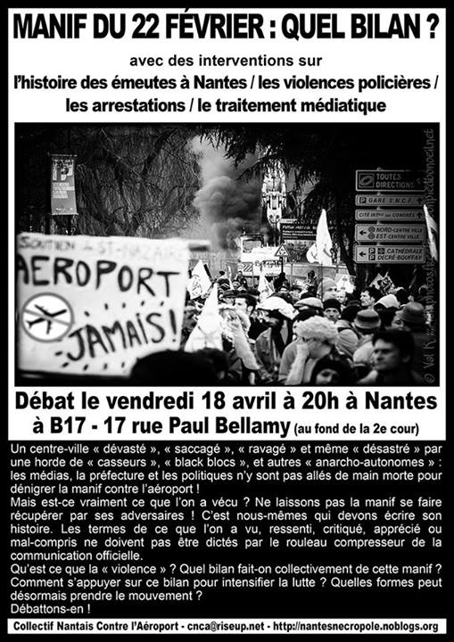 Vend. 18 avril à Nantes - débat manif du 22 fév contre l’aéroport : quel bilan ?