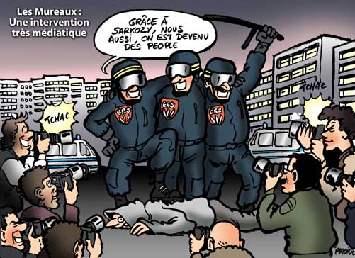 Le raid de policiers mercredi matin aux Mureaux (Yvelines) en présence d’une cohorte de journalistes et de photographe sème la controverse dans la presse. La plupart des syndicalistes de la police ont nié avoir informé les médias, mais certains ont reconnu à demi-mots l’avoir fait dans un but pédagogique sur l’action de la police dans les cités, au risque de faire échouer l’opération. Ce raid avait été précédé d’une série d’interventions médiatisées, comme l’interview sur son lit d’hôpital d’un CRS agressé quelques jours plus tôt dans le département de l’Essonne.