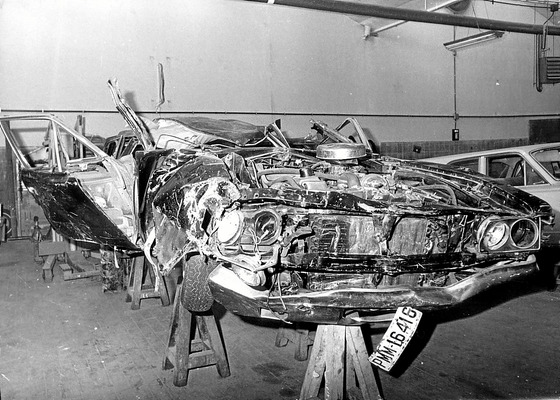 Record du monde de saut en hauteur catégorie Premier Ministre et voiture blindée - Dodge Dart GT 3700, 2300 kg tout de même. Record homologué à 35 m.