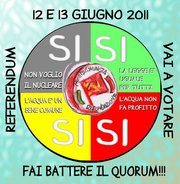 BATTI QUORUM !2 SI’ PER “SORELLA ACQUA”a) LA PRIMA DOMANDA CHE TROVEREMO SCRITTA sulla scheda rossa chiede l’abrogazione di quella parte del Decreto Ronchi che costringe a indire entro il 2011 le gare che metteranno sul mercato almeno il 40% di quote di tutte le società di gestione attualmente ancora detenute da enti pubblici. La vittoria al referendum bloccherebbe di fatto il procedimento di privatizzazione dei servizi idrici avviato dal Governo Berlusconi.b) LA SECONDA DOMANDA CHE TROVEREMO SCRITTA sulla scheda gialla chiede l’abrogazione della norma che permette ai gestori privati di ottenere un guadagno dal capitale investito. In questo modo verrebbe impedito alle aziende di realizzare profitti caricando sulla bolletta dei cittadini un 7%, e di conseguenza si renderebbe non conveniente alle aziende stesse di occuparsi di acqua.c) PERCHÉ 2 SÌ: l’acqua è l’insostituibile principio della vita sulla terra ma anche un dono di Dio, per chi crede. Comunque è un bene comune, il che vuol dire che appartiene di diritto all’intera umanità. Dunque il diritto all’acqua deve essere garantito a ogni persona e nessuno deve appropriarsi dell’acqua per farci profitti, neppure gli Enti locali devono consegnare la gestione dei servizi nelle mani degli speculatori, delle multinazionali e della mafia: le fonti, gli acquedotti e i servizi idrici e di depurazione sono un bene pubblico essenziale, appartengono a tutti e devono essere invendibili.d) LA GESTIONE PRIVATA DELL’ACQUA FINORA È ANDATA DI PARI PASSO CON L’IMPENNATA NEL COSTO DEI SERVIZI PUBBLICI LOCALI:1) Gli affidamenti degli Ato (Ambiti territoriali ottimali, cioè i bacini idrografici) ad aziende miste o private hanno comportato un balzo secco della bolletta. Nel 2002 ogni italiano pagava in media 182 euro l’anno per il servizio idrico. Oggi siamo a 301 euro, il 65% in più.2) Un caso emblematico di questo sciacallaggio è avvenuto a Latina, dove il Comune è affiancato dalla multinazionale francese Veolia Water: i costi sono schizzati tra il 300 e il 3000% . Un altro esempio del salasso è Agrigento dove si registra la bolletta più alta d’Italia nonostante che l’acqua arrivi solo due volte la settimana e solo in due terzi della città. Nella città siciliana il gestore privato che ha sestuplicato la bolletta è Girgenti Acque e si è scoperto che vende la preziosa risorsa vitale alla Coca-Cola per farne una bevanda gassata. Un altro esempio è Arezzo, e l’elenco potrebbe continuare….3) Le regioni dove il processo di privatizzazione è più avanti sono quelli che hanno i prezzi più elevati: gli abitanti di Umbria (412 euro di spesa l’anno), Emilia (383 euro) e Liguria (367 euro), Toscana (462 euro). In Toscana, dove l’acqua è privata da 15 anni e le tariffe sono le più alte d’Italiae) ALLA GESTIONE PRIVATA DELL’ACQUA E ALL’AUMENTO DELLE BOLLETTE NON È CORRISPOSTO UN MIGLIORAMENTO DELLA QUALITÀ DELL’ACQUA, DELLA MANUTENZIONE DEGLI IMPIANTI E DELLE INFRASTRUTTURE1) da quando è entrata in vigore la legge Galli, la norma che ha dato il via al processo di liberalizzazione del servizio idrico, gli investimenti sono diminuiti di circa due terzi, le tariffe sono aumentate del 60% circa, si è verificata una dispersione/cattivo utilizzo delle risorse pari a circa 60 - 65%, e una riduzione importante del personale (anche di quello specializzato per fare i controlli) con esternalizzazioni e proliferazione di tante micro società, provocando cosi problemi sociali, economici e anche occupazionali2) Un esempio è l’Ato3 sarnese-vesuviano e il relativo acquedotto che da quando è stato consegnato nelle mani del consorzio di imprese Gori Spa è diventato come l’autostrada Napoli-Salerno, lavori perenni, fatti male apposta, interruzioni improvvise del servizio, cosche all’assalto dei subappalti, controlli zero.3) del resto un privato non ha interesse a raggiungere zone isolate o difficili da collegare e quindi ci saranno discriminazioni4) le grandi società francesi sono già pronte a spartirsi il bottino “Italia”. Altro che vantaggi da libera concorrenza!5) se i privati inseguono solo i profitti chi li obbligherà a investire nelle infrastrutture?6) Il sogno dei malfattori è che l’Italia divenga una immensa Società per azioni, con Consigli di amministrazione composti da politici o loro prestanomi, da prenditori di soldi pubblici, borghesia mafiosa e criminalità organizzata dei colletti bianchi. Numerose inchieste giudiziarie hanno evidenziato gli interessi criminali che ruotano nella gestione dell’acqua, dove operano spesso le solite società miste pubblico-private del tipo di quelle che nel settore dei rifiuti hanno coinvolto per fatti di mafia il Sottosegretario PDL Cosentino. L’acqua è pubblica, è nostra, non è cosa loro, non va inquinata dal denaro.7) l’acqua pubblica è garanzia per tutti, in ogni angolo del paese, di un servizio della massima qualità e a tariffe eque. Il miglioramento della situazione si avrà cacciando - anche a pedate – quegli amministratori pubblici che tradiscono le nostre buone aspettative e gestiscono male la nostra proprietà.f) LA PRIVATIZZAZIONE DELL’ACQUA È SEGNO DELL’INVOLUZIONE CULTURALE OGGI IN ATTO, CON LA PREVALENZA DEL PROFITTO SULLA PERSONA, DELL’AVERE SULL’ESSERE, DEGLI AFFARI PRIMA DEL DIRITTO, DEL CRIMINE AL POSTO DELLA TRASPARENZAUN SI’ PER FERMARE IL NUCLEAREa) LA DOMANDA CHE TROVEREMO SCRITTA sulla scheda grigia chiede l’abrogazione dell’art. 5, commi 1 e 8 della legge Omnibus n. 75 del 2011, come ha deciso la Cassazione settimana scorsa, e in pratica porterebbe a escludere la produzione di energia nucleare nel territorio italiano.b) PERCHÉ SÌ CONTRO IL NUCLEARE:Il nucleare è pericoloso per la nostra salute:1) Più lontani si vive da una centrale, minore è il rischio di radiazioni. Nelle zone vicinissime il normale funzionamento di una centrale rilascia radioattività e causa tumori, aborti, leucemie, inquinament