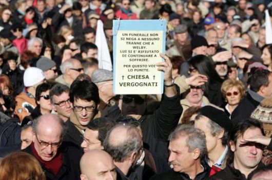 Eutanasia; semmai possono, lor signori, disquisire sugli aspetti connessi alla loro “fede” senza tentare sortite a voler condizionare la “ragione” e la Politica intesa questa come scelta. Funerali in Chiesa per il sig. Welby; è un problema che riguarda ed interessa le loro coscienze di religiosi che negano, quanto il defunto non aveva chiesto se non per bocca della di lui consorte, dimostrando di dare le pagelle - brutto vizio ! - anche alla Morte, qualunque essa sia. Il perdono lo hanno perso per istrada, nonostante il continuo richiamo a questa pratica, ma rivolta ai fedeli.