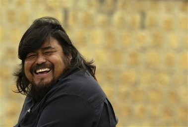 Flavio Sosa one of the founders of the Oaxaca People’s Assembly, smiles during an interview with the Associated Press in Oaxaca City, Saturday, Nov. 4, 2006, in Mexico. As the most visible leader of a leftist movement that has rattled the Vicente Fox government, chased state police out of this southern Mexican city and fought off hundreds of federal troops, Sosa faces arrest warrants on riot and conspiracy charges. (AP Photo/Guillermo Arias)