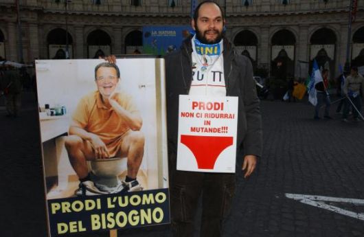 Possiamo solo dire che, se la manifestazione contro la Finanziaria non fosse stata patrocinata da Berlusconi, ma fosse stata apartitica, in piazza ci sarebbero scese 60 milioni di persone. Ma tant’è. Trangugiamo la medicina amara della malattia e la malattia è stato quello che loro hanno seminato. Ma gente che si mette a piangere prim’ancora che Berlusconi parli, dubito che capisca qualcosa. La mitomania è una brutta bestia, e il portafoglio al posto della coscienza è anche peggio.